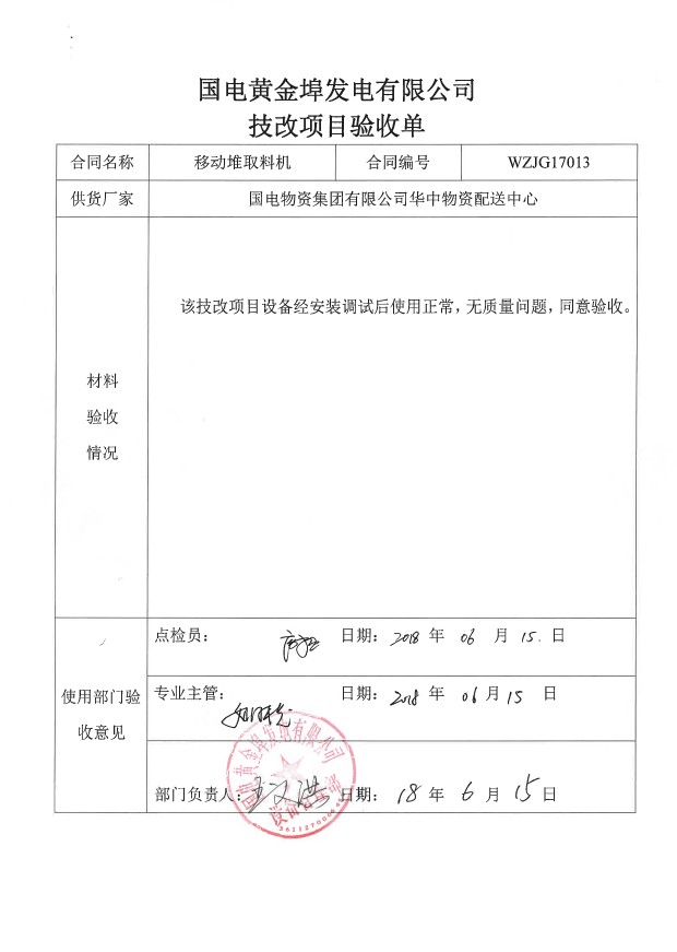 | 熱烈祝賀上饒黃金埠電廠800噸/小時移動堆料機順利交付 |