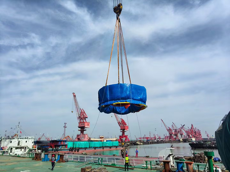| CMEC承接荷蘭TMS公司設計松大生產的風電發電樁柱海上運輸工具樁塞今天順利裝船發運,前往荷蘭 |